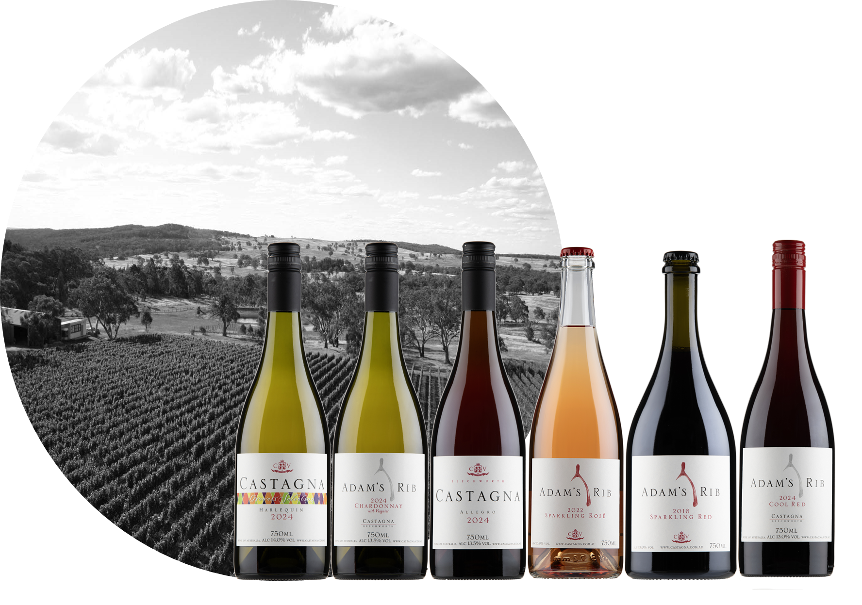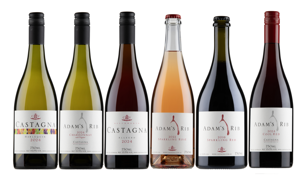 To mark the moment, we’ve put together this special mixed six-pack — a little like a cellar door tasting, just enjoyed in your own time. It brings together the return of the much-loved 2024 Castagna Allegro Rosé, the long-sold-out 2024 Castagna Harlequin, and the equally elusive 2024 Adam’s Rib Chardonnay with Viognier, alongside three new Adam’s Rib wines: the 2016 Sparkling Red, the 2022 Sparkling Rosé, and the 2024 ‘Cool Red’, all three made to be served straight from the fridge.